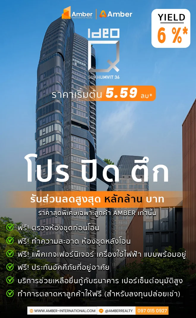 IDEO Q Sukhumvit 36 ตั้งใจออกแบบให้เป็นคอนโดระดับลักซ์ชัวรีที่ “อยู่ใจกลางเมือง แต่ให้ความรู้สึกส่วนตัวและสงบ” ผสาน ความหรูหราแบบโมเดิร์น เข้ากับ ฟังก์ชันที่ตอบโจทย์ชีวิตคนเมืองรุ่นใหม่